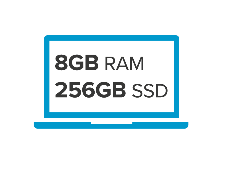 All Laptops and Desktops come with 8GB RAM and 256GB SSD as standard